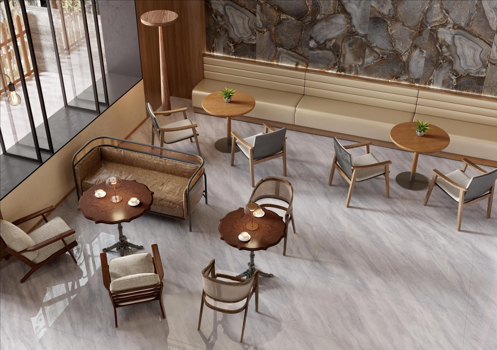 空間應(yīng)用:酒店大堂、背景墻等高端場所;室內(nèi)墻面/地面,客廳、餐廳、廚房、臥室衛(wèi)生間、陽臺、玄關(guān)、過道等