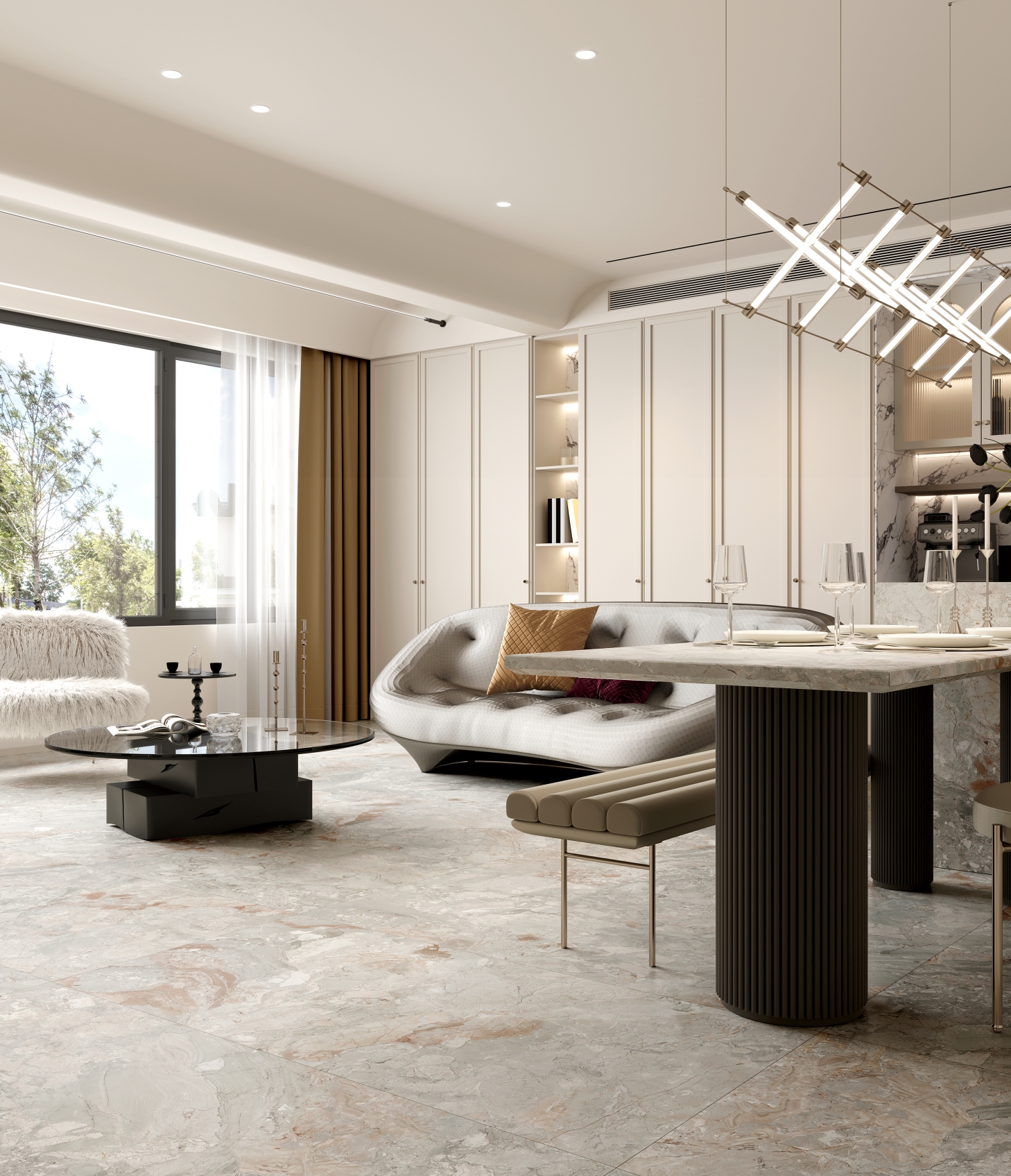 空間應用:酒店大堂、背景墻等高端場所;室內墻面/地面,客廳、餐廳、廚房、臥室衛生間、陽臺、玄關、過道等