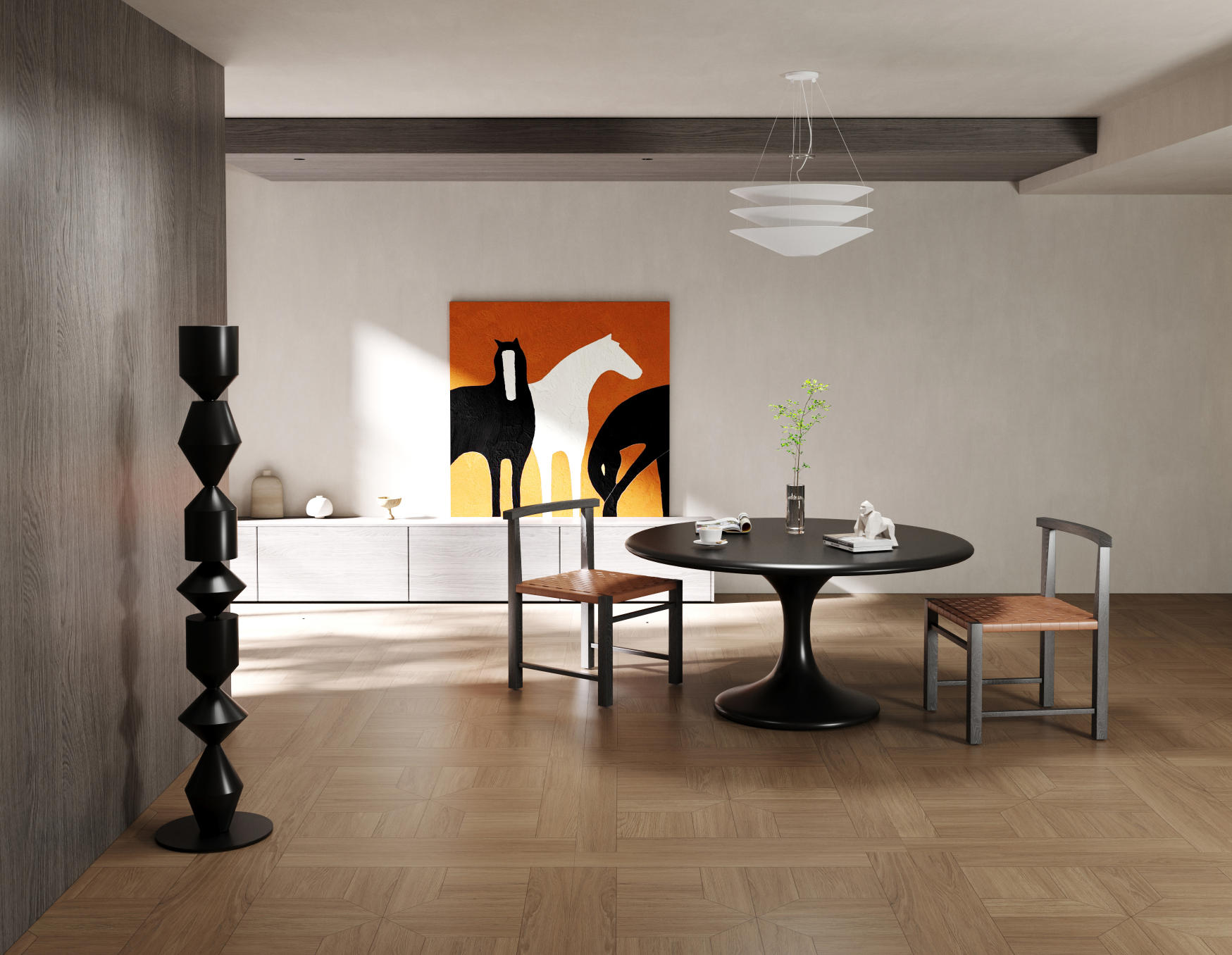 淺夏格調(diào)以萬字拼花為設(shè)計(jì)錨點(diǎn),將幾何的秩序韻律,織入原生木色的溫柔肌理,打造讓空間有情緒、有質(zhì)感的生活載體,讓每一道木紋都承載著歲月沉甸甸鄂故事。