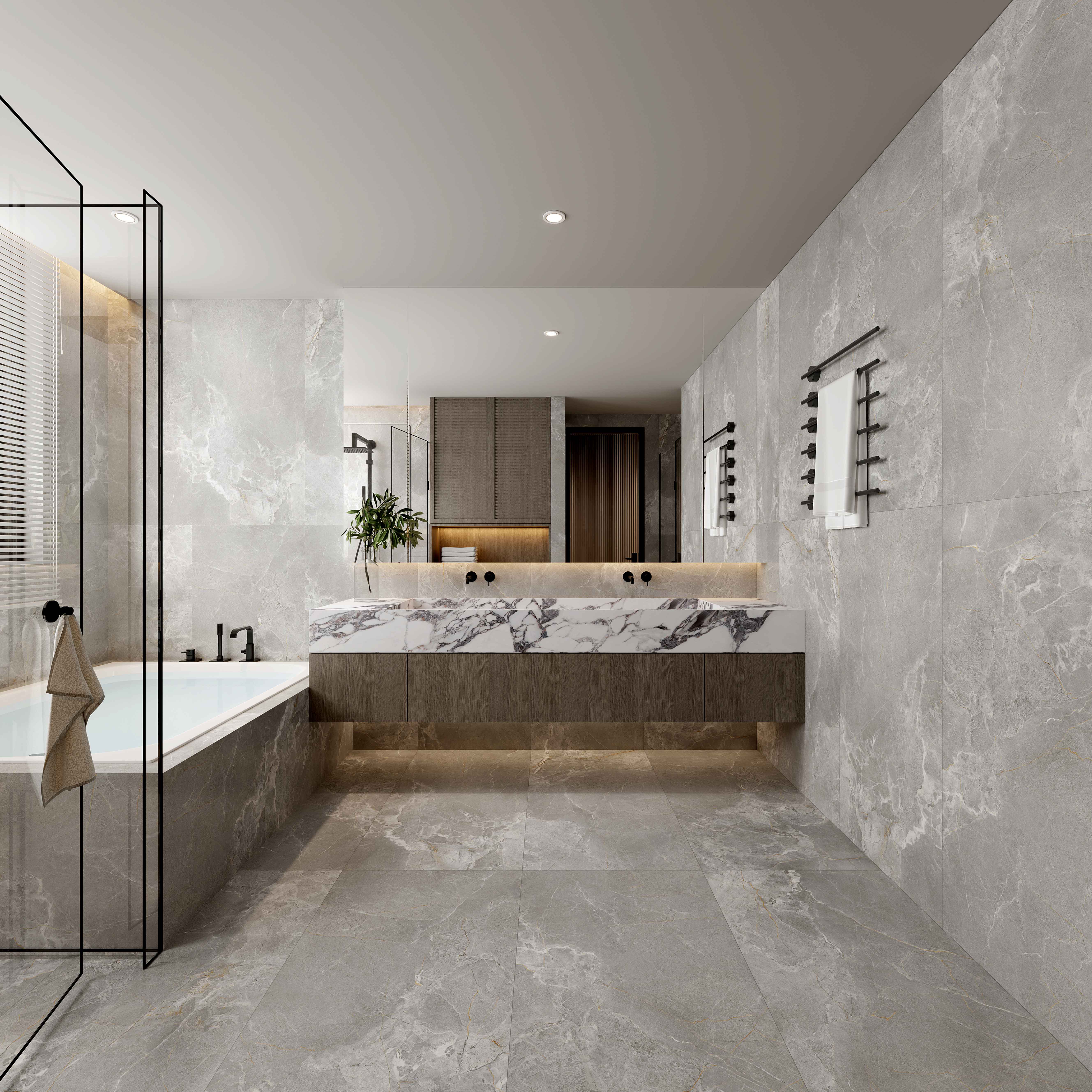 濃郁的灰色色澤,細膩的自然游動,輕松營造出一股浪漫、寫意的空間氛圍。大空間鋪貼,整體感覺更連貫,更氣派。